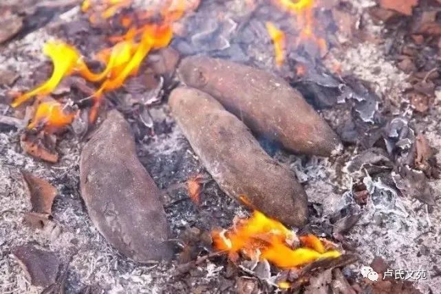 就这样找着吃着,笑着说着。你看着她笑,他看着你笑。你说他脸上都是黑,她说你嘴巴、鼻子都是黑。笑得人仰马翻,就是看不到自己的脸。吃饱以后,大家手捧土和石头把余火掩埋,以防引起大火。